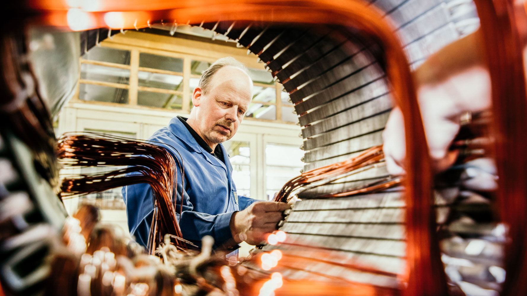 At our motor winding rooms, we have PC-controlled winding machines, a whole range of wire thicknesses for small to large industrial motors, impregnation plants, and drying ovens that are also suitable for larger electric motors.