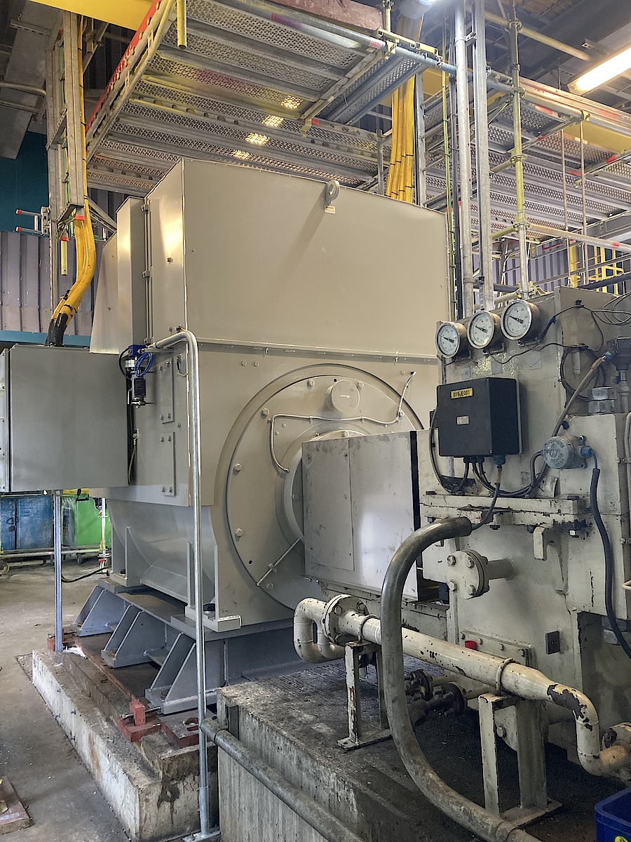 MENZEL responded with a focused engineering approach tailored to the customer’s urgent operational needs. The available stock motor was upgraded and certified to II 3 G Ex ec IIC T4 Gc, making it fully compliant with ATEX requirements and suitable for operation in hazardous gas atmospheres. In advance, it was clarified with the operator that explosion protection is allowed at the site of use. To compensate for the significant frame size difference, MENZEL’s engineering team designed and manufactured a custom base frame. This allowed the smaller BG 630 motor to be securely installed in place of the original BG 1000 unit without modifying the existing foundation. Electrical integration was carefully adapted as well. The winding configuration was reconfigured to match the existing frequency inverter, enabling seamless operation without changes to the control hardware. In addition, the terminal boxes were repositioned to align with the existing cable routing. This avoided cable modifications and significantly simplified installation on site. From order to delivery, the entire solution was completedin less than two weeks. The result was a true drop-in replacement, minimizing plant downtime and reducing commissioning risks. After on-site acceptance, the motor was installed and successfully commissioned within a single weekend.